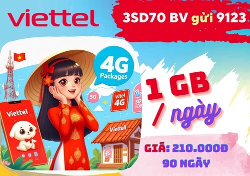 Gói cước 3SD70 Viettel siêu rẻ sử dụng 90 ngày