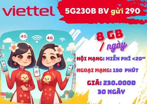 • Tên gói cước:3T5G230B ViettelMã gói: 3T5G230B.