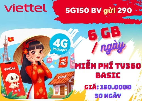 Đồng hành cùng gói cước 5G150 Viettel, quý khách sẽ không còn lo lắng phí data đắt đỏ mỗi khi có nhu cầu truy cập internet tốc độ cao trên di động. Nhu cầu học tập,làm việc và giải trí online mỗi ngày sẽ được đáp ứng dễ dàng với mức cước vô cùng tiết kiệm. Ngoài dung lượng data ưu đãi lên đến 180GB mỗi tháng để kết nối theo sở thích, 5G150 Viettel còn cho phép người dùng xem phim, truyền hình hoàn toàn miễn phí suốt 30 ngày. Mời các bạn cùng tìm hiểu chi tiết gói ưu đãi này để trải nghiệm ngay hôm nay nhé!