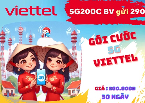Với combo ưu đãi cực lớn, tích hợp nhiều tính năng kèm mức phí hợp lý, gói cước 5G200C Viettel vừa triển khai đã nhận được sự quan tâm, lựa chọn của đông đảo khách hàng. Gửi tin theo cú pháp: 5G200C DB gửi 290, bạn sẽ có cơ hội sở hữu gói dịch vụ này, tự tin liên lạc trong nước, sử dụng data và giải trí tốc độ cao suốt 30 ngày.