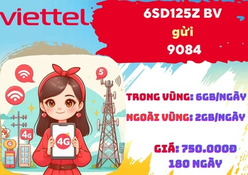 Đăng ký gói cước 6SD125Z Viettel sử dụng liên tục 6 tháng