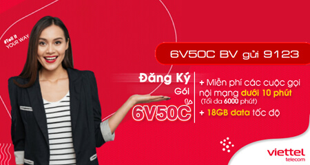 - Gói cước 6V50C được triển khai trên toàn quốc. Đối tượng đăng ký là các thuê bao đang hoạt động 2 chiều trên mạng Viettel. Tùy từng thuê bao mà gói cước phù hợp đúng đối tượng khách hàng đăng ký.