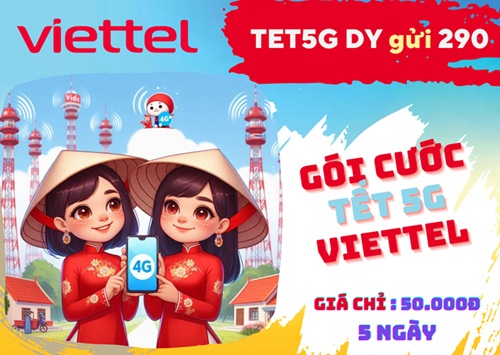 Không phải ngẫu nhiên vừa mới triển khai gói TET5G Viettel đã được không ít khách hàng lựa chọn sử dụng. Gói 5G Tết này sở hữu combo ưu đãi hấp dẫn, đáp ứng tốt nhu cầu liên lạc, sử dụng data và giải trí thả ga của người dùng với mức phí chỉ 50.000đ. Tất cả thuê bao di động Viettel đang hoạt động hai chiều sẽ đăng ký gói thành công dễ dàng với cú pháp: TET5G DB gửi 290. Ưu đãi gói TET5G sẽ hỗ trợ  người dùng thoải mái tìm kiếm thông tin, liên lạc trong nước và giải trí tốc dộ cao suốt 5 ngày.