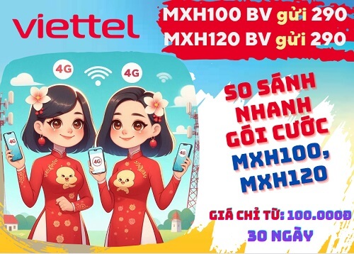 Bảng so sánh gói cước MXH100 và MXH120 của Viettel